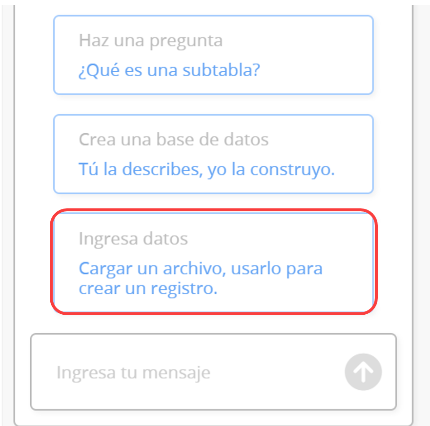Sube un archivo para crear automáticamente los registros correspondientes. Leer más